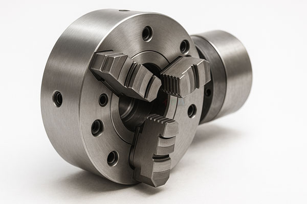 チャック(Chuck)は、旋盤の主軸に取り付けてワークを把握(つかむ)するための装置です。回転するワークがブレないように固定し、正確な位置で加工を行うために欠かせません。